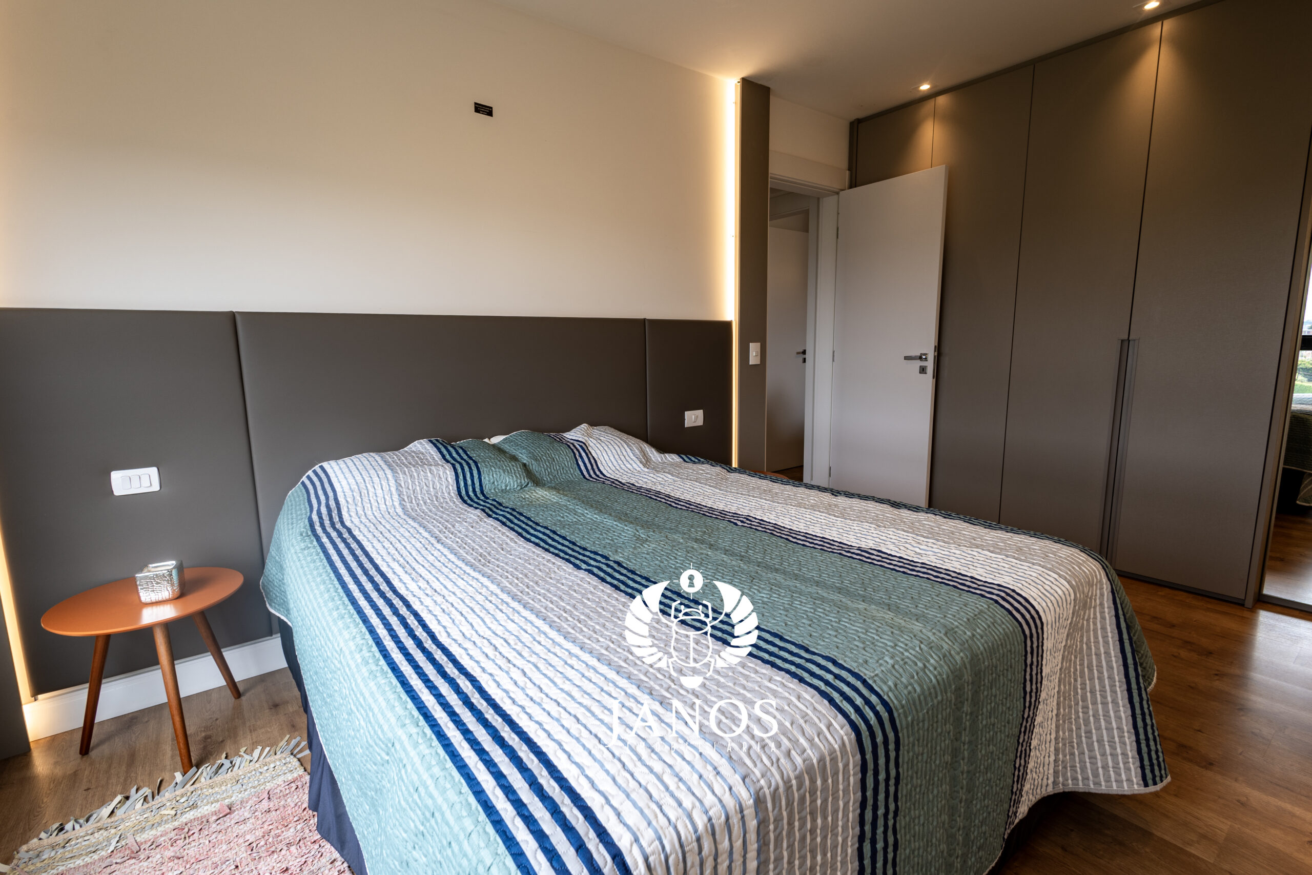 A manta acústica nas áreas secas e as paredes duplas no dormitório garantem um verdadeiro silêncio de condomínio premium.